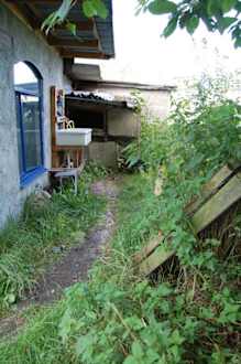 Weg zum Waschhaus und Außenwaschbecken