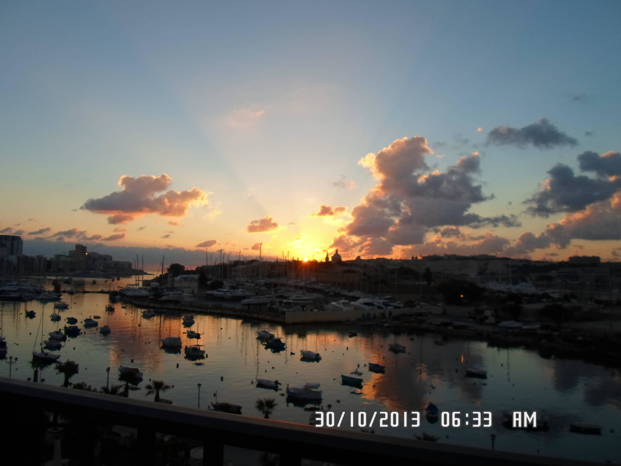 Sonnenaufgang über La Valetta vom Balkon