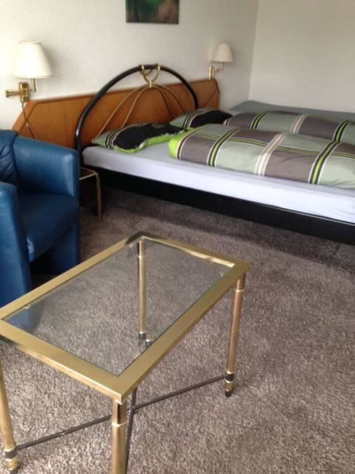 Hochflorier Teppichboden, sehr unhygenisch. Mobiliar passt irgendwie nicht in das Zimmer, sieht aus wie eine Abstellkammer und Möbel aus einem preiswerten Möbelhaus. Die blauen Sessel sind schon sehr abgewetzt.