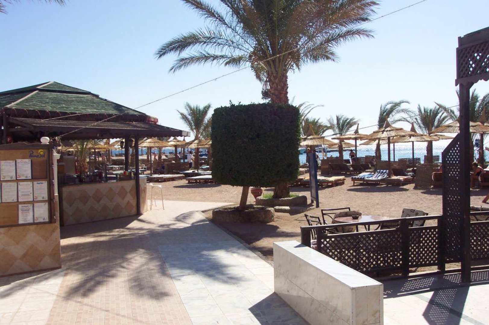 links ist die Strandbar zu sehen.