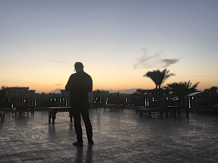 Terrasse mit Blick zur Rückreise. Hier konnte man immer sehr schöne Sonnenuntergänge beobachten.