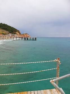 Theoretisch könnten diese Stege mit Liege-Plattformen diesen Küstenabschnitt etwas aufwerten. Aber diese Plattformen sind gesperrt und völlig marode!