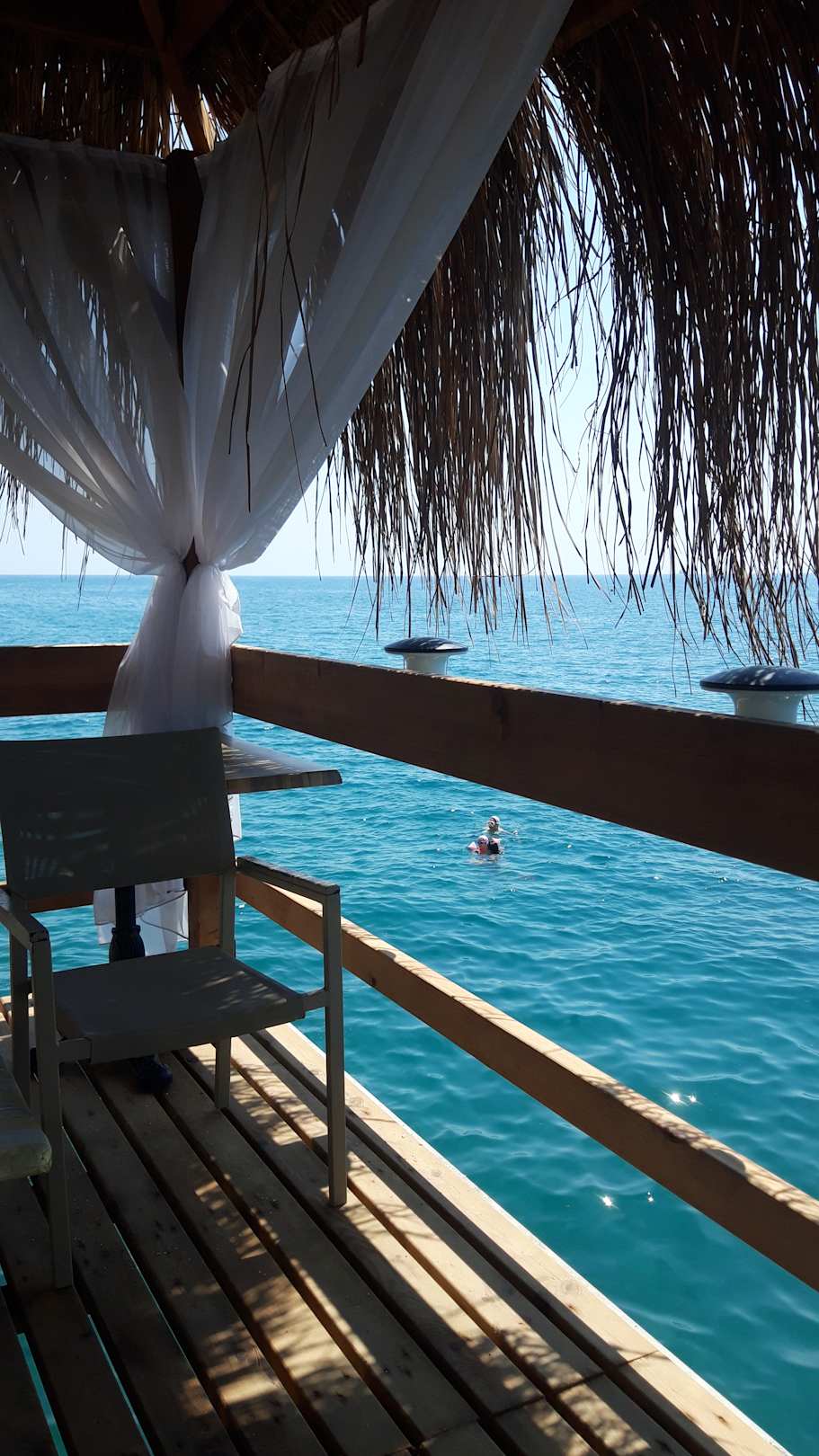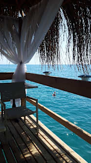 Blick aufs Meer vom Pavillon auf dem Steg