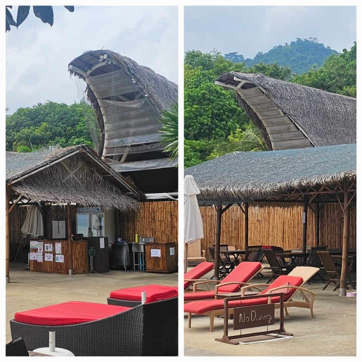 Poolbereich, schmutzig und es wird Unrat gelagert.