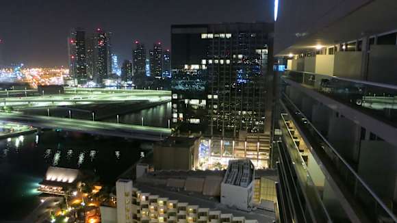 Ausblickaus dem 20.ten Stock im Neubau, unten rechts sieht man den Altbau mit dem Dach des Speiseraums ( diese 5 Wellenförmige Teile )