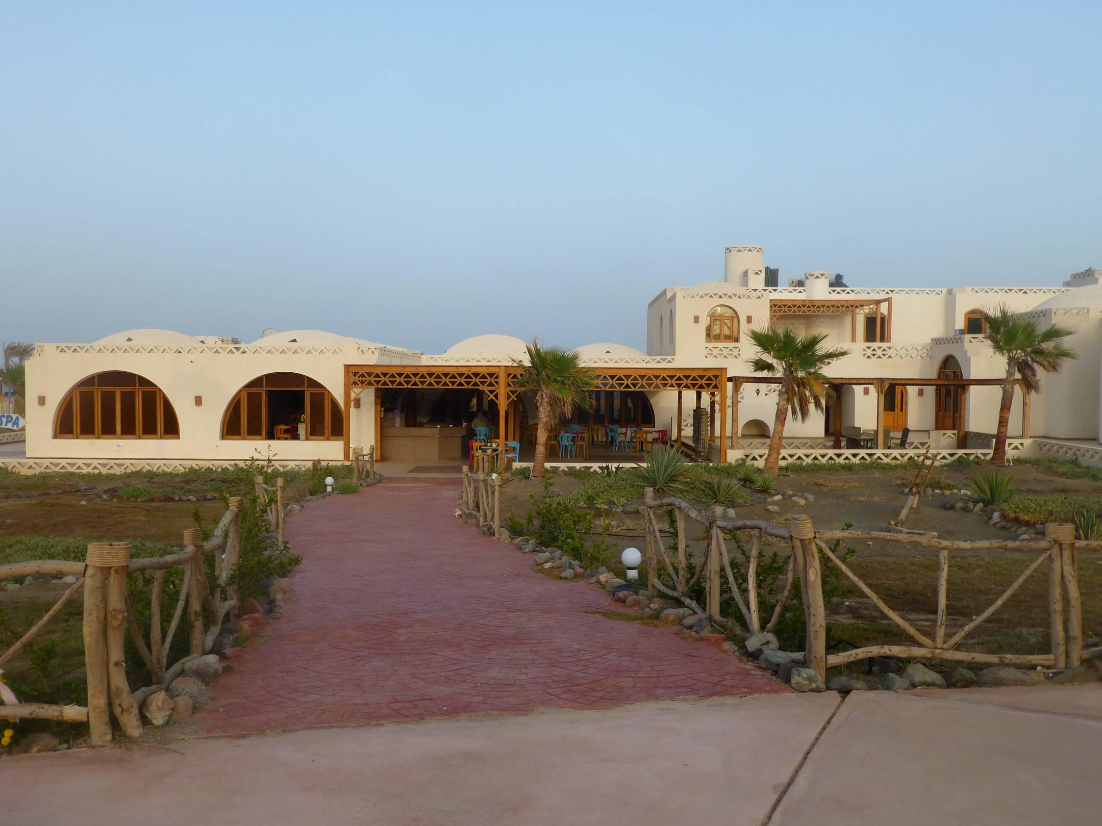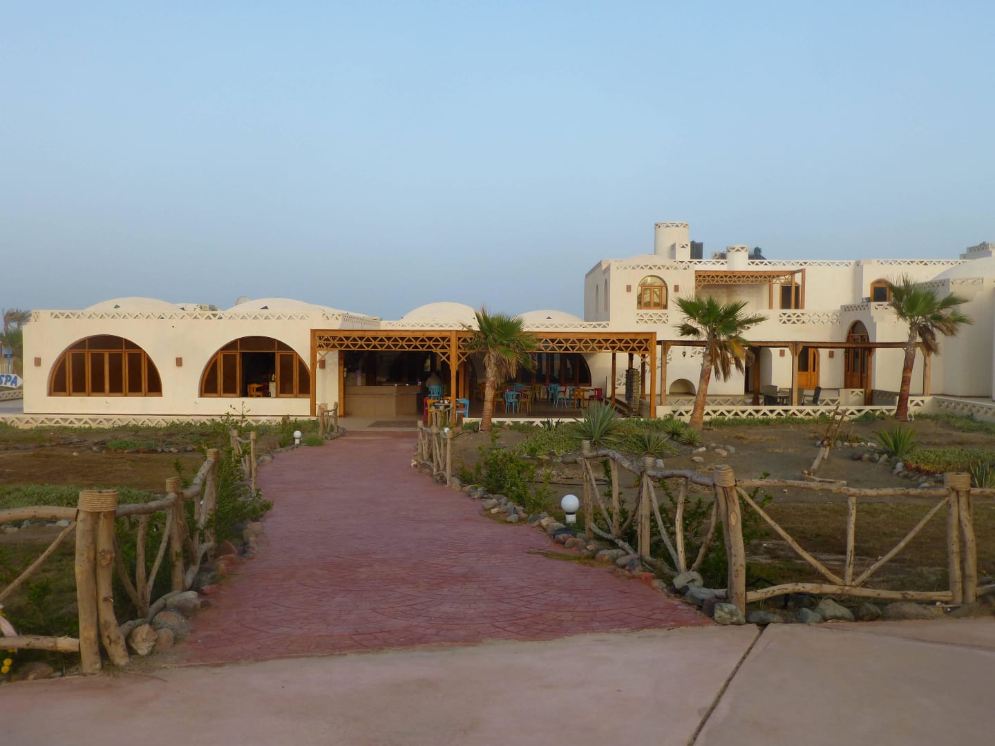 Blick vom Pool zum Restaurant