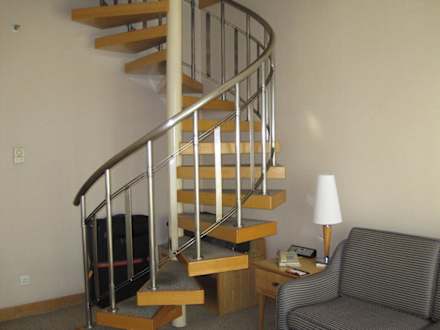 WendeltreppeDiese schmale Wendeltreppe verbindet den unteren Wohnraum mit dem oberen Schlafraum der Suite