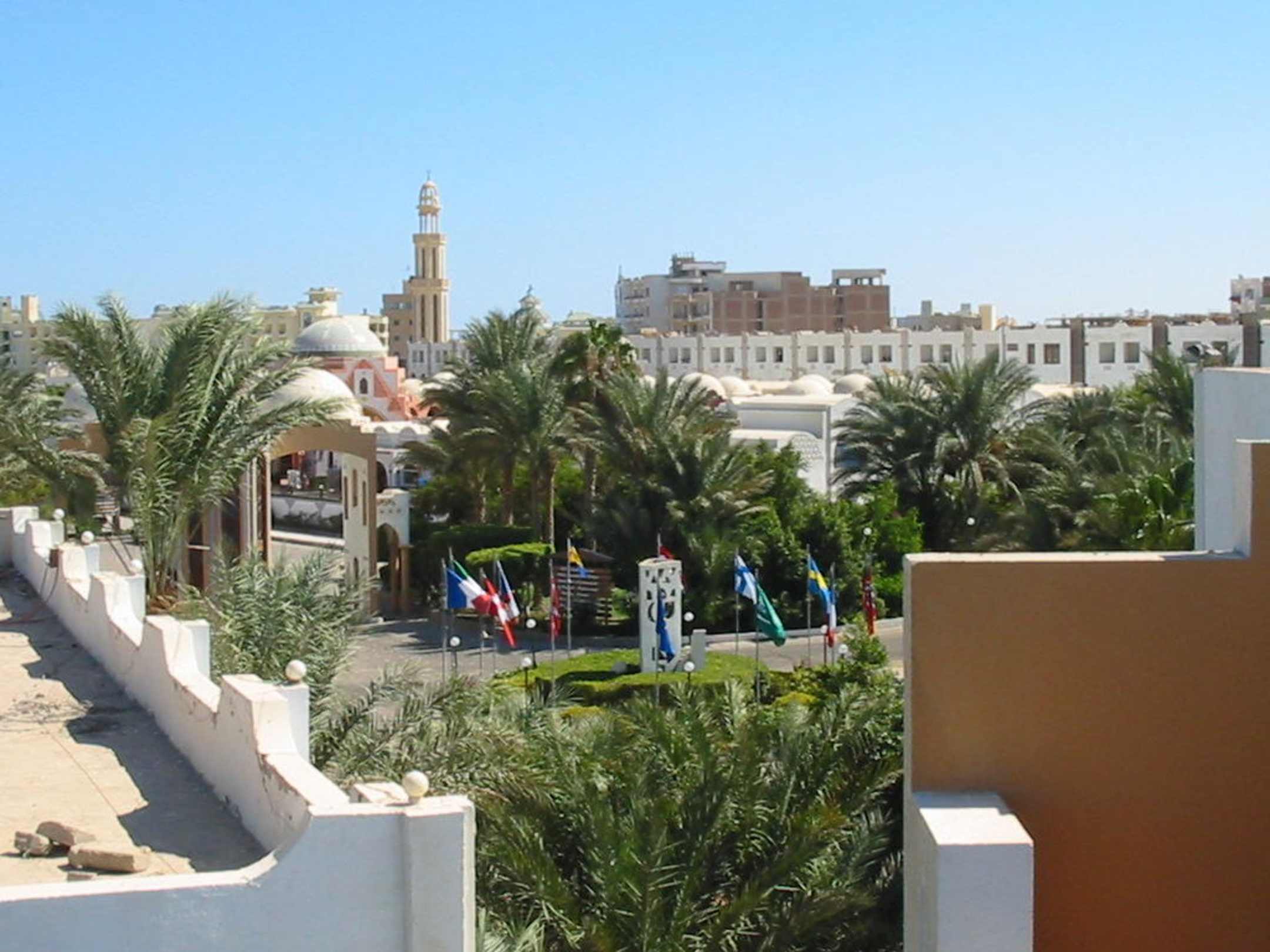 Blick vom Dach des Bel Air auf das Arabia.Blick vom Dach des Bel Air Hotels auf den Eingang des Arabia Hotels.