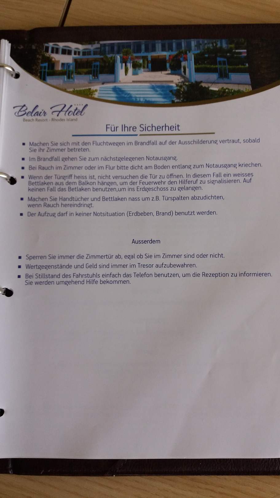 Die im Zimmer liegende Infomappe mit allen Zeiten