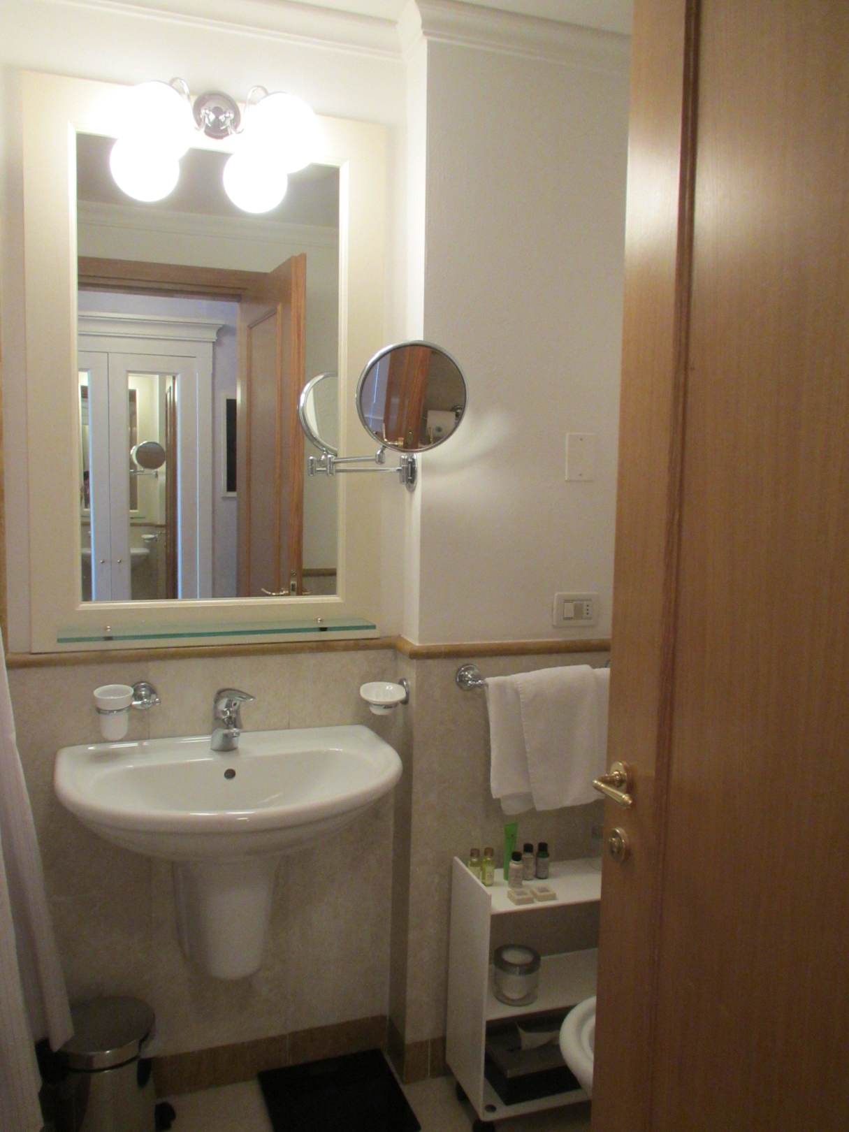 Das WC befindet sich hinter der Tür. Alles viel zu eng im Bad.