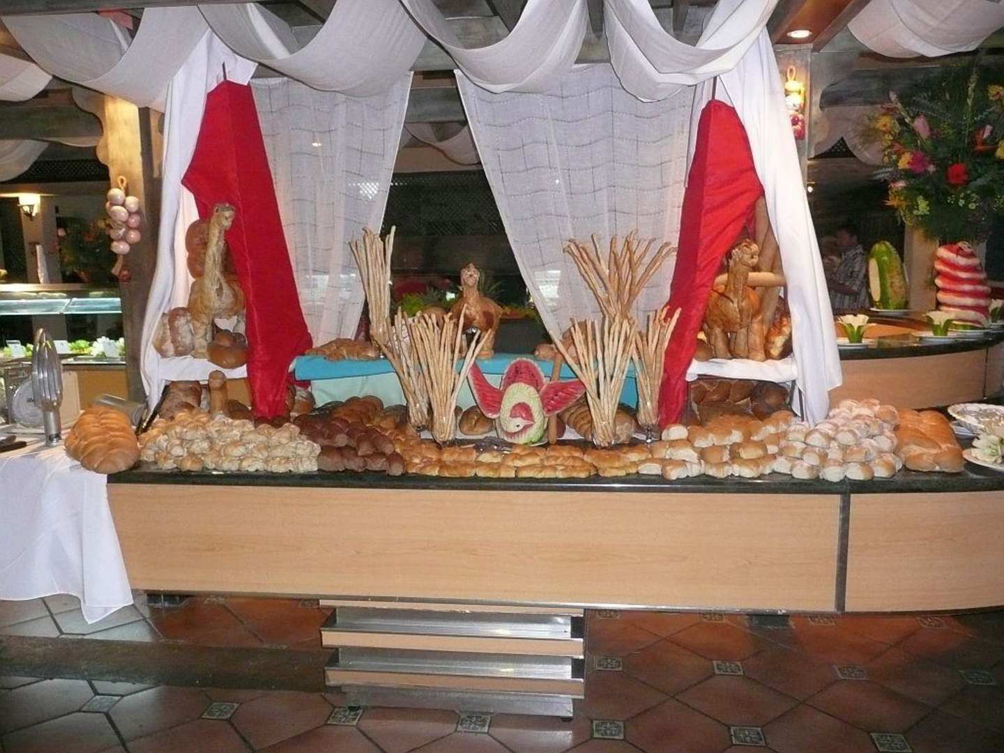 Brot und Brötchentheke meisterhaft dekoriert.