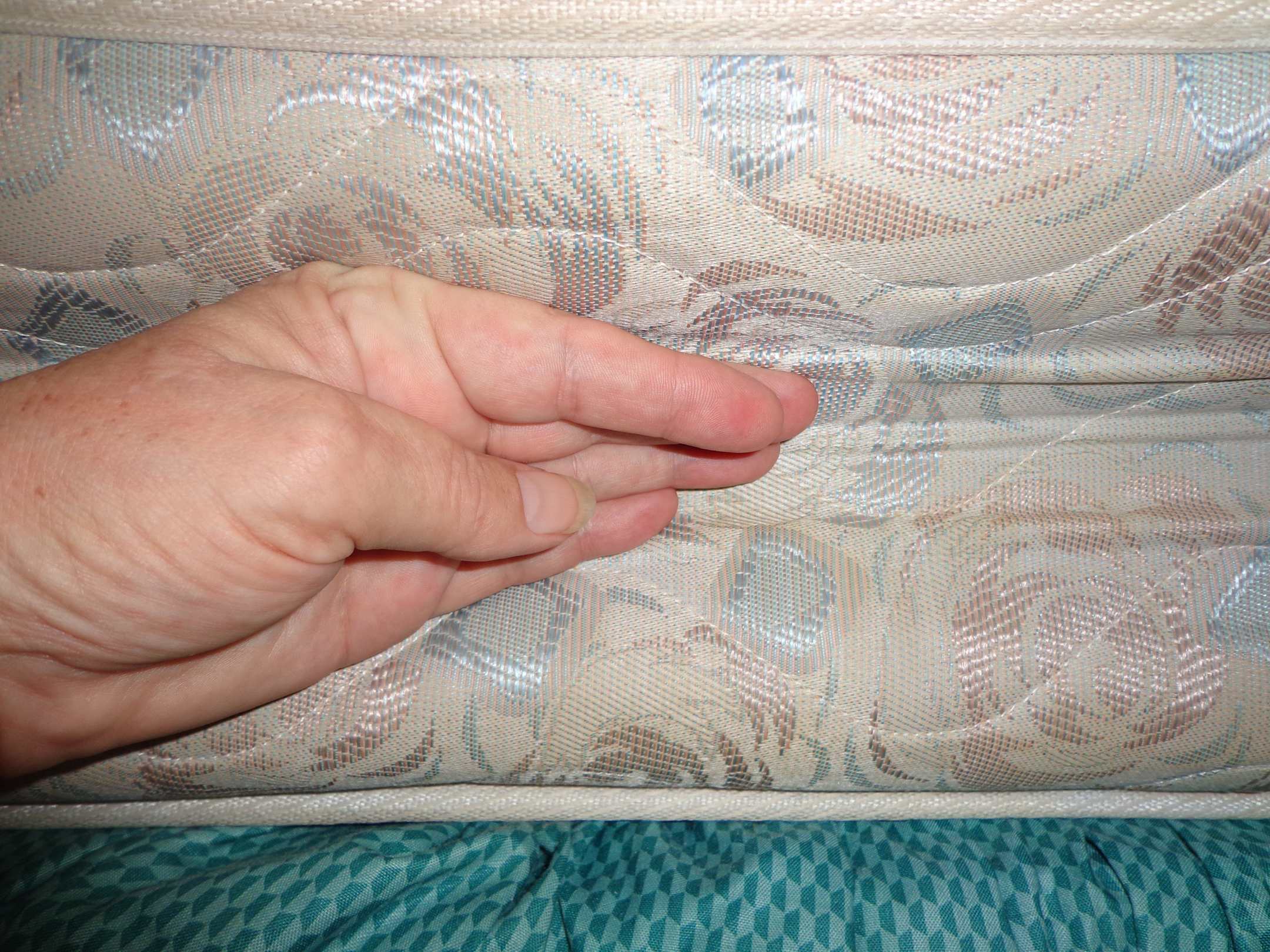 Durchgelegene Matratze mit Platz fuer eine Hand da