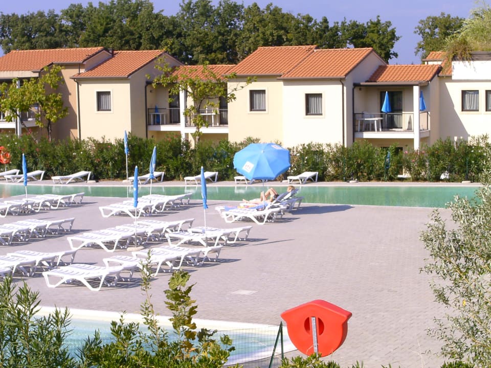 Blick auf Sonnenterrasse und Pool vom Balkon Belvedere Village