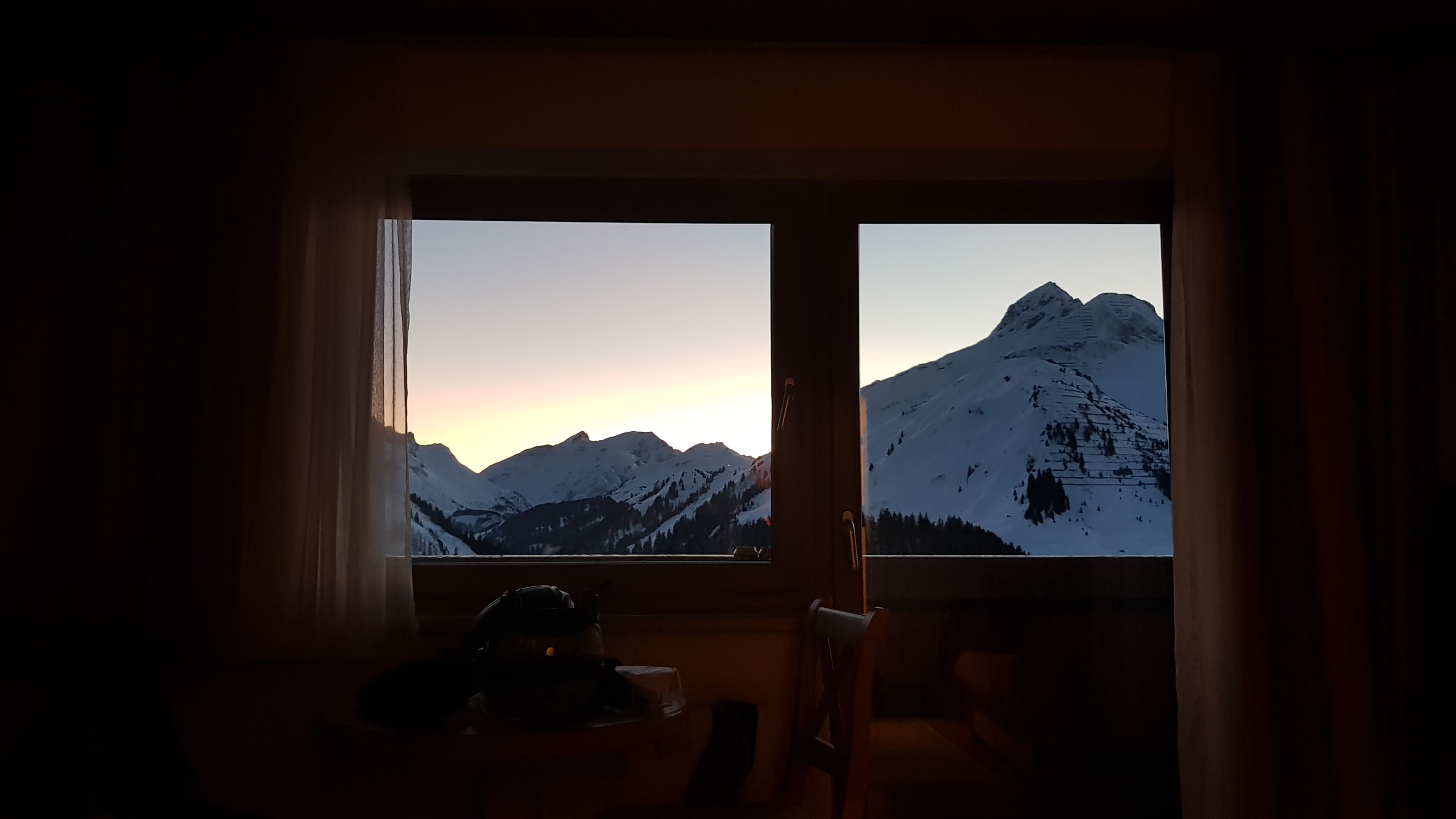 Im Bett liegen und die Berge genießen