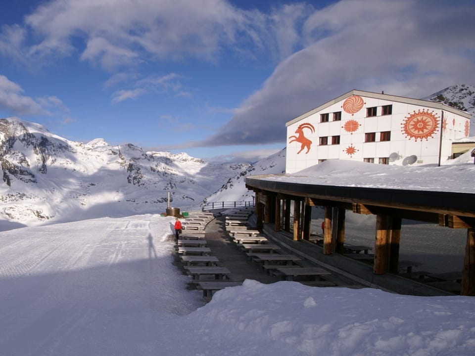 Morgenstimmung (ca. 8:15 Uhr) am Berghaus Diavolezza auf 3000m.
