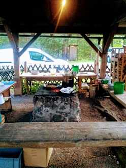 Nach dem Angeln am Fischteich wurde der frische Fisch am Feuer zubereitet