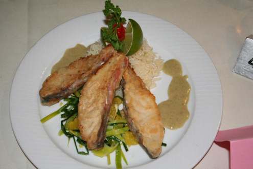 Pangasiusfilet auf Lauchgemüse, Rieslingsauce
