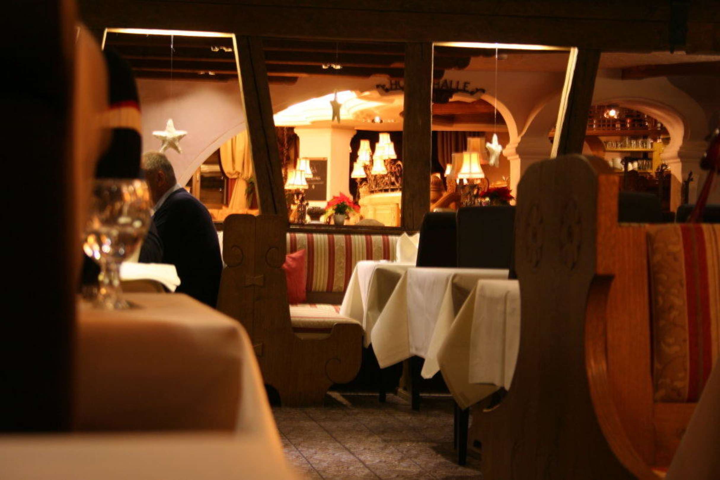 Blick vom fast leeren Restaurant zur Bar