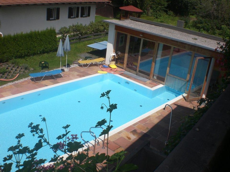 Blick vom Balkon aufs Pool