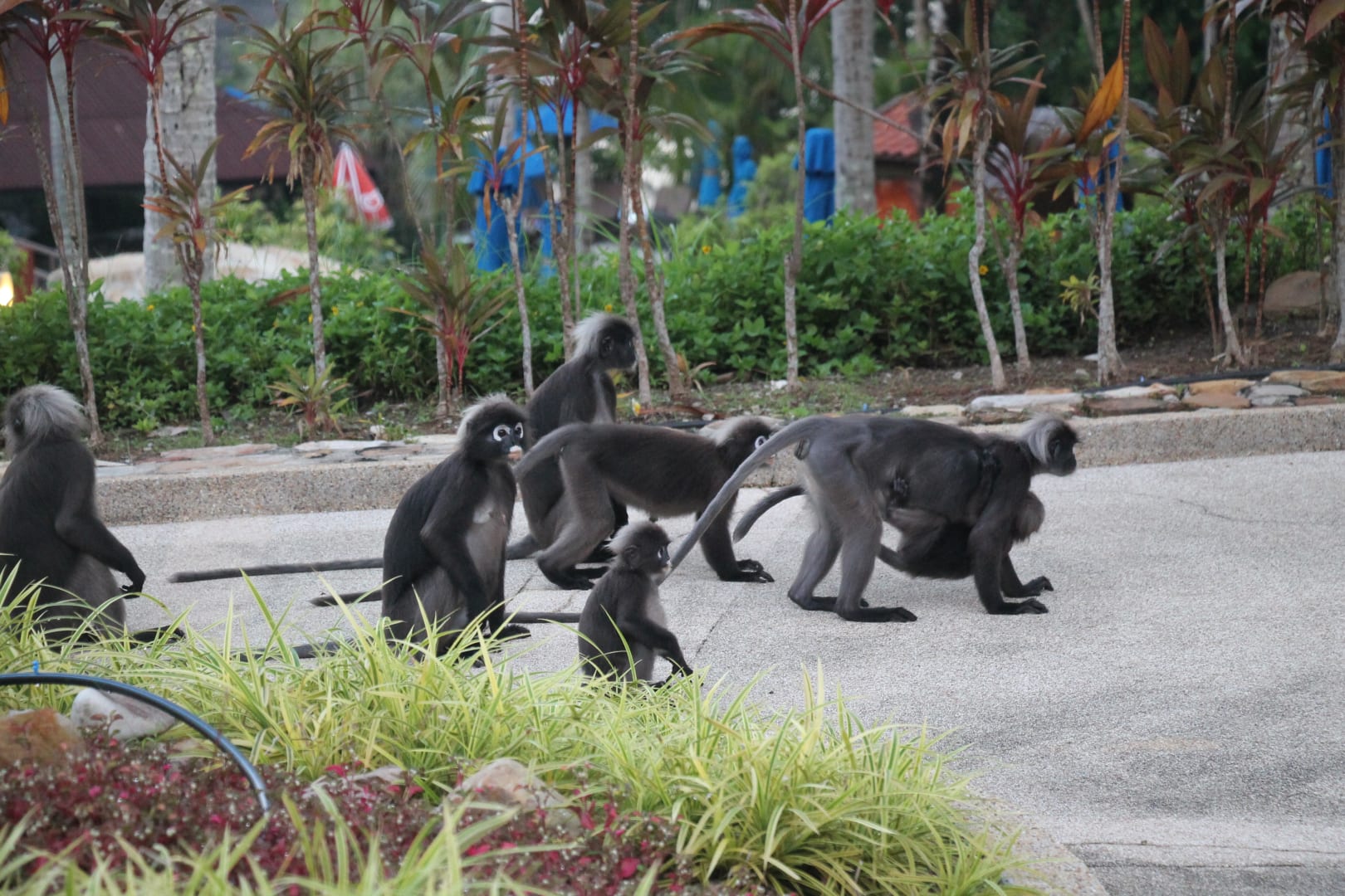 Brillenaffen in der Hotelanlage
