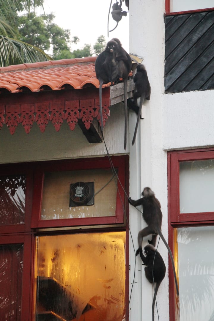 Brillenaffen in der Hotelanlage