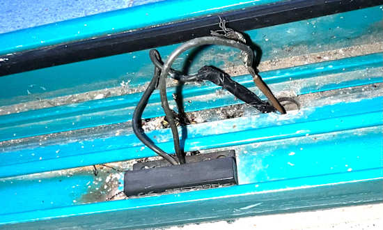 Aus der Zarge der Balkontür schauen blanke Kabel raus. Es wurde nur etwas Klebeband drauf geklebt