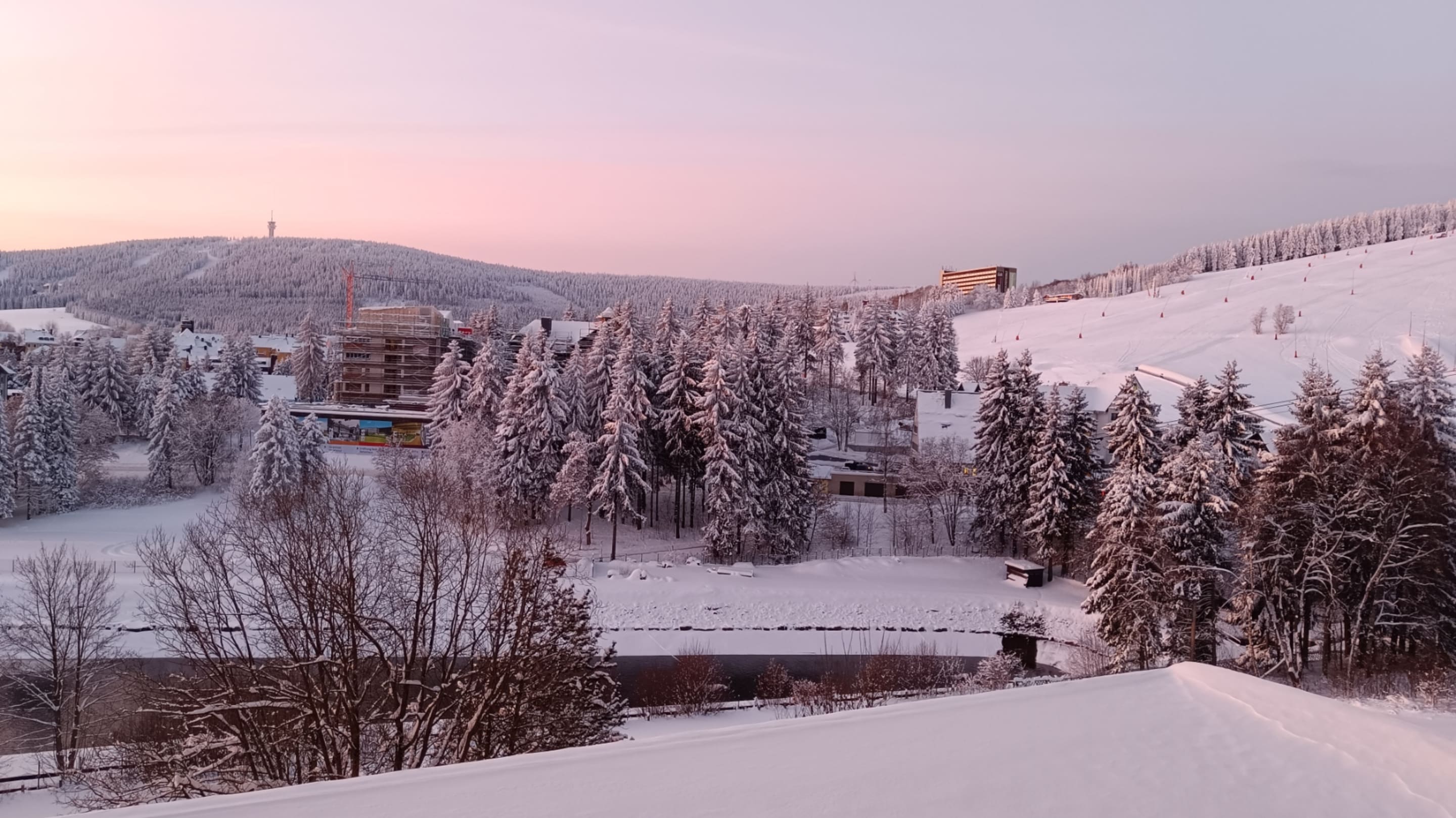 Ausblick morgens Richtung Oberwiesenthal und Keilberg (Tschechien)