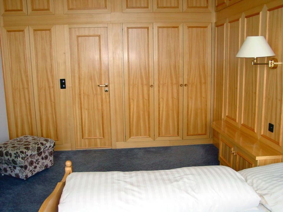 Tür zu einem BadEin Bad erreicht man vom Schlafzimmer der Junior-Suite. Die Tür in der verkleideten Wand fällt kaum auf.