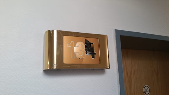 defektes Zimmernummernschild 134 (Nachbar)