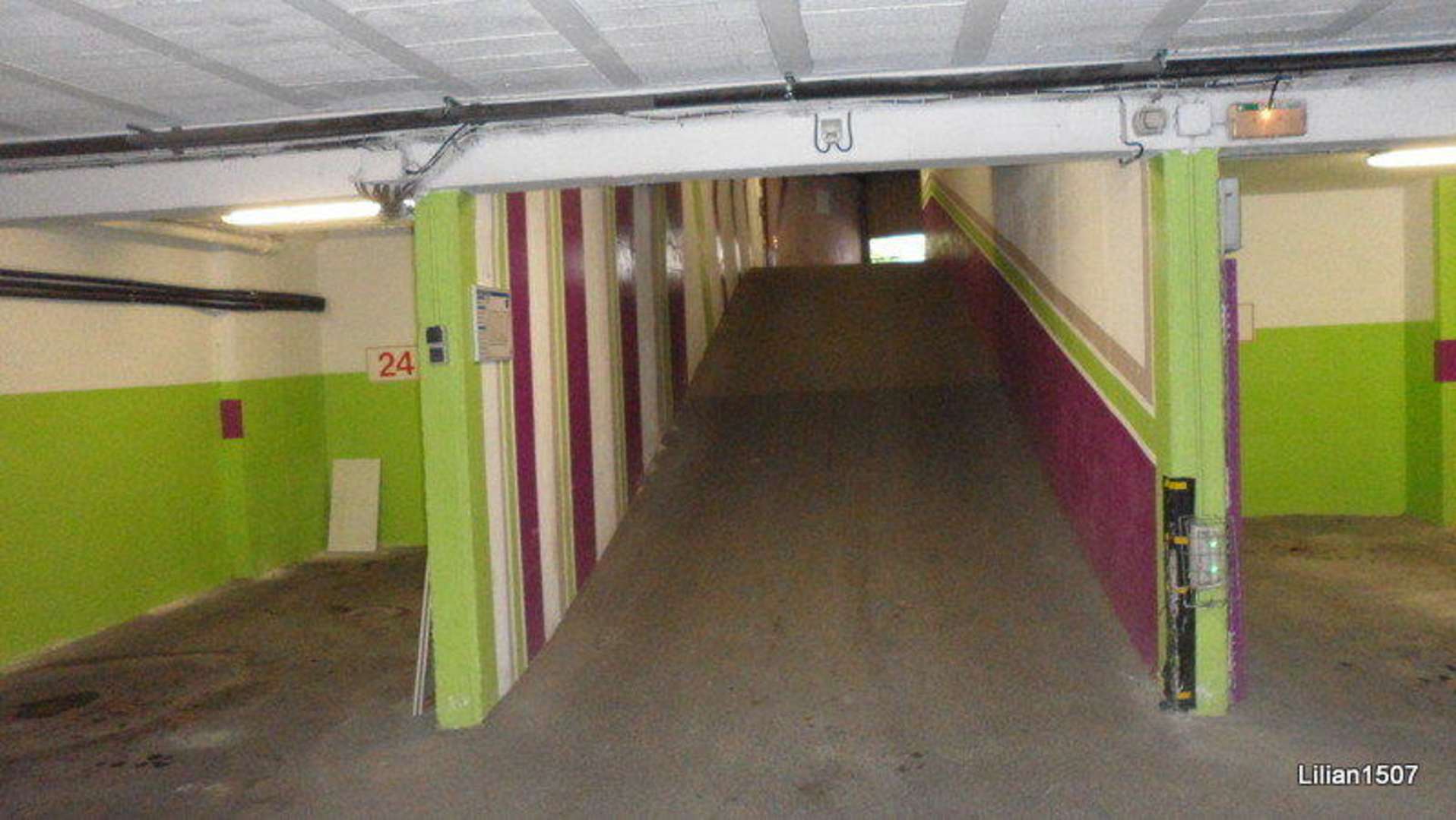 Tiefgarage mit schmaler Zufahrt.