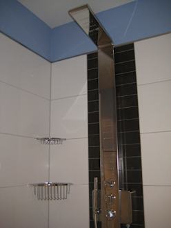 Celebrity Suite - BadMassagedüsen leider eigentlich nicht nutzbar, da sich direkt gegenüber der Wandheizkörper befindet.