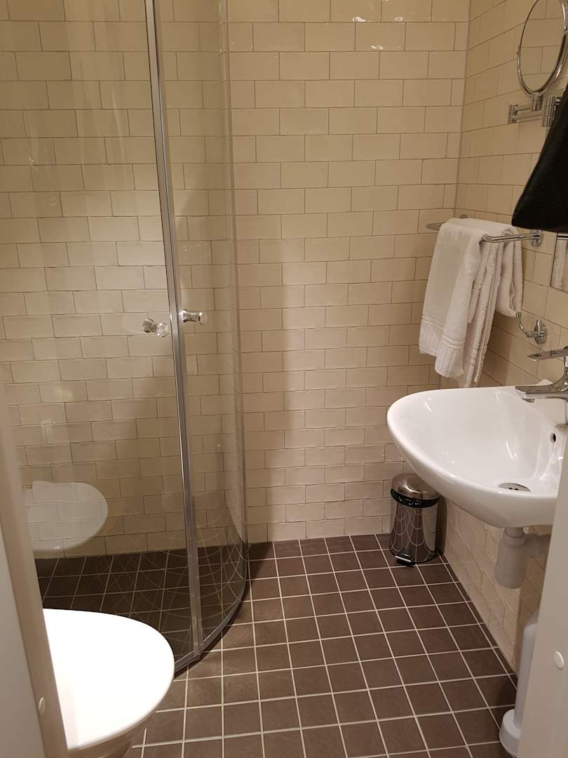Kleines Bad, aber für eine Person ok. Nur bei der Duschkabine droht Überschwemmung