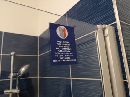 Montageaufkleber auf den Glasscheiben der Dusche