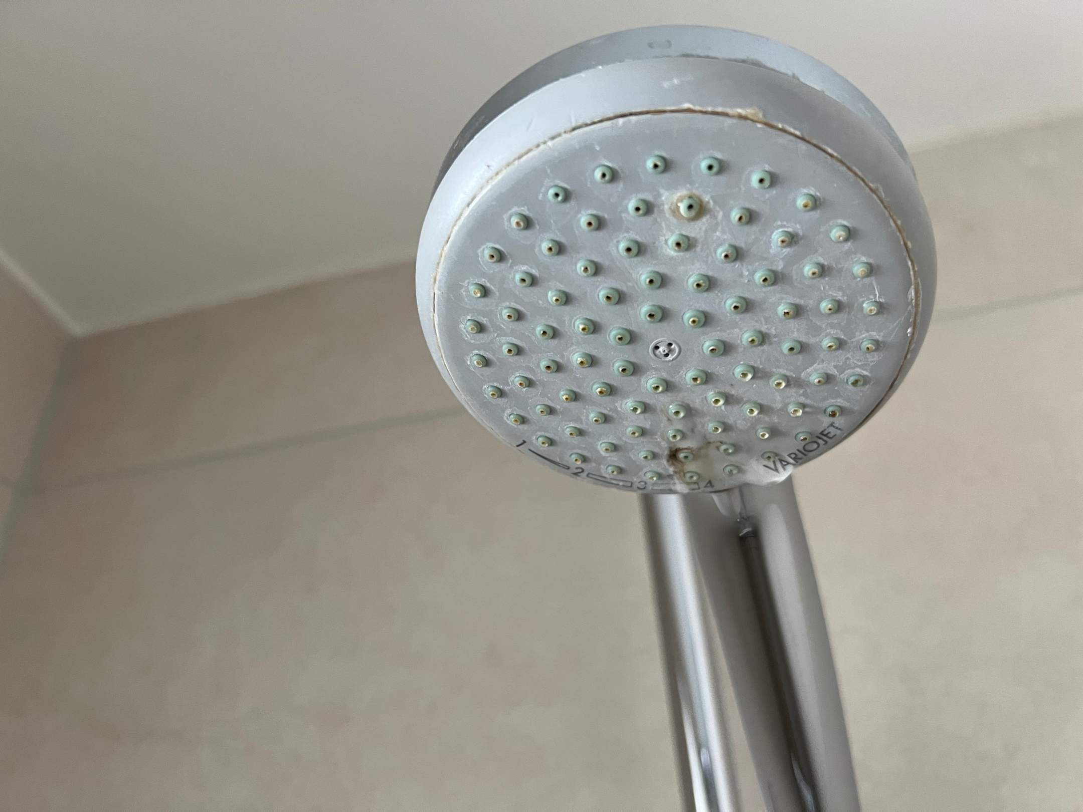 Duschkopf total verkalkt wurde wohl noch nie gereinigt.