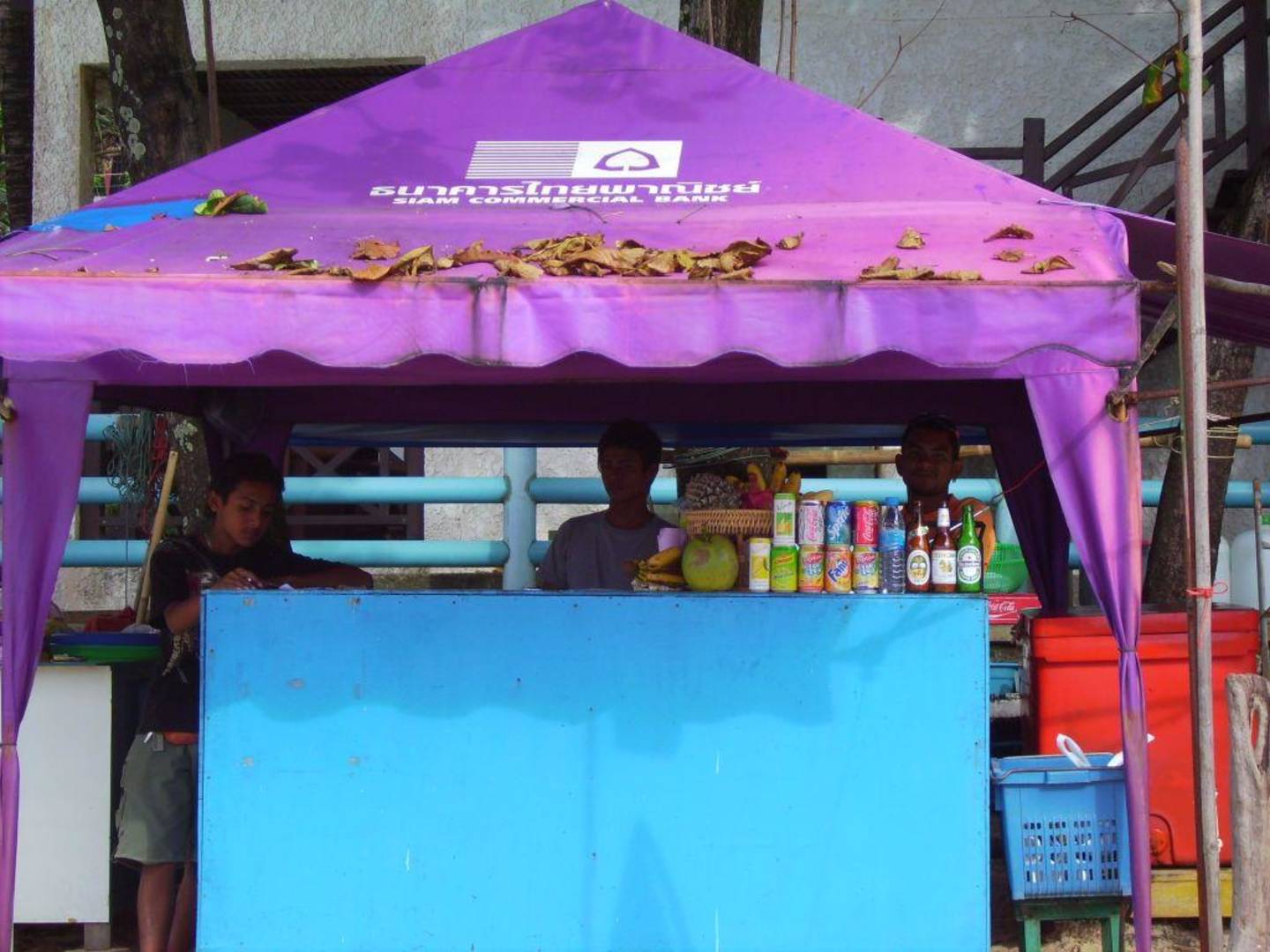 Unsere " Getränkestation " am Karon BeachSuper Team, und sehr geschäftstüchtig !