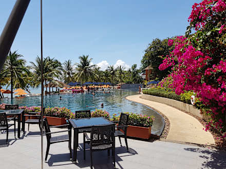 Blick vom Frühstück auf den Pool