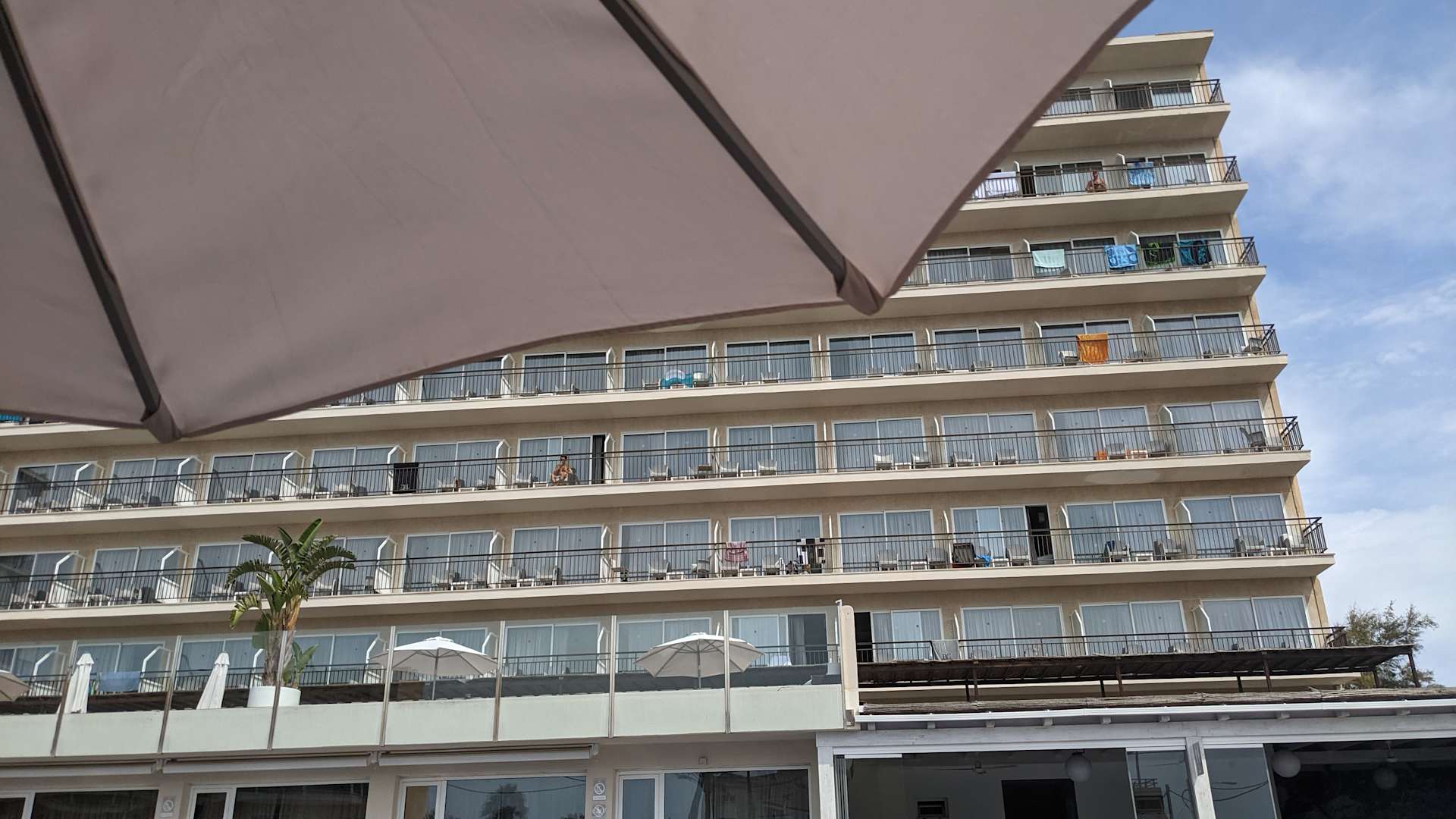Blick vom Pool aufs Hotel