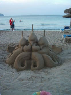 Es sind immer neue Sand Figuren am Strand zufinden