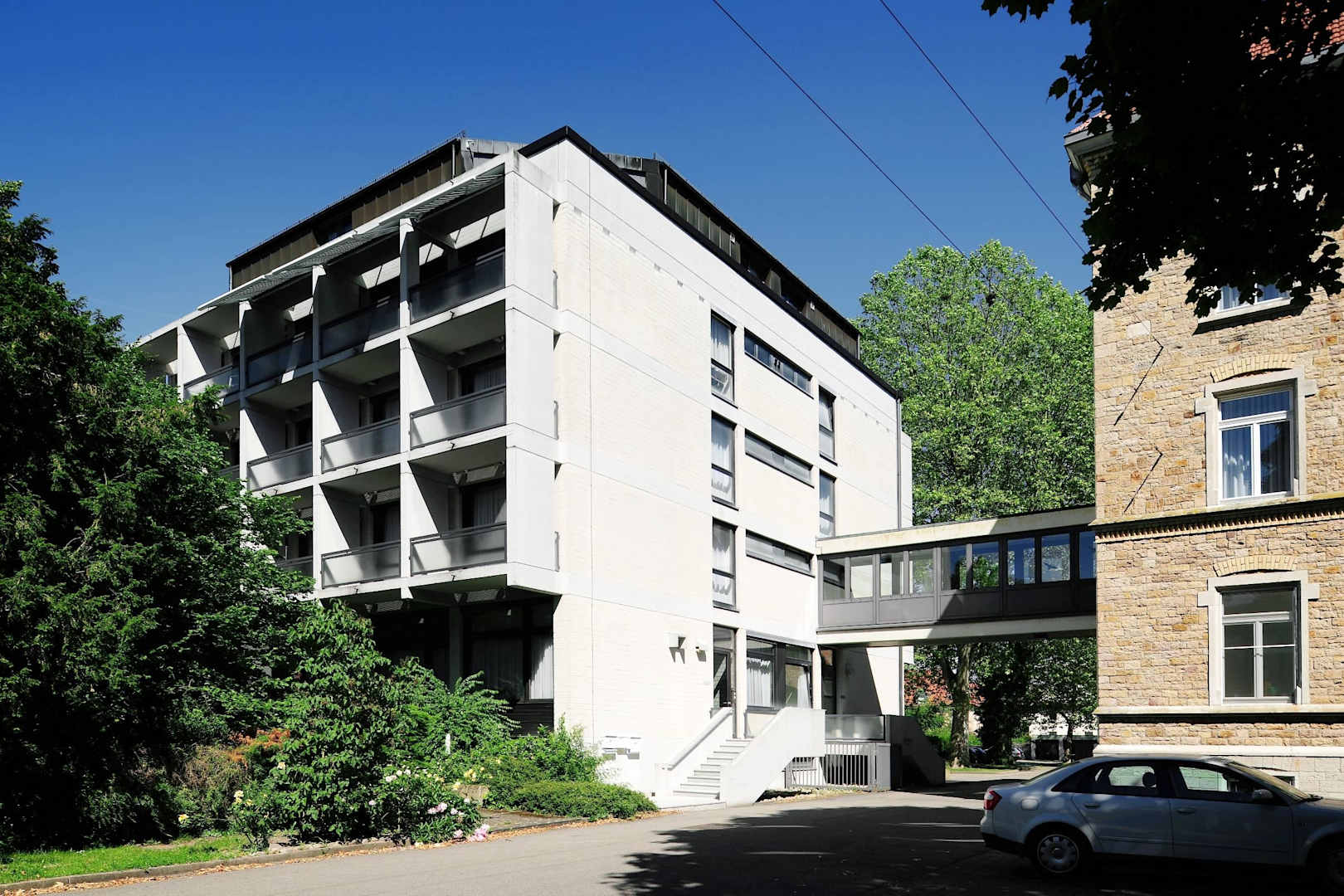 Einfahrt zum Innenhof mit Parkplätzen