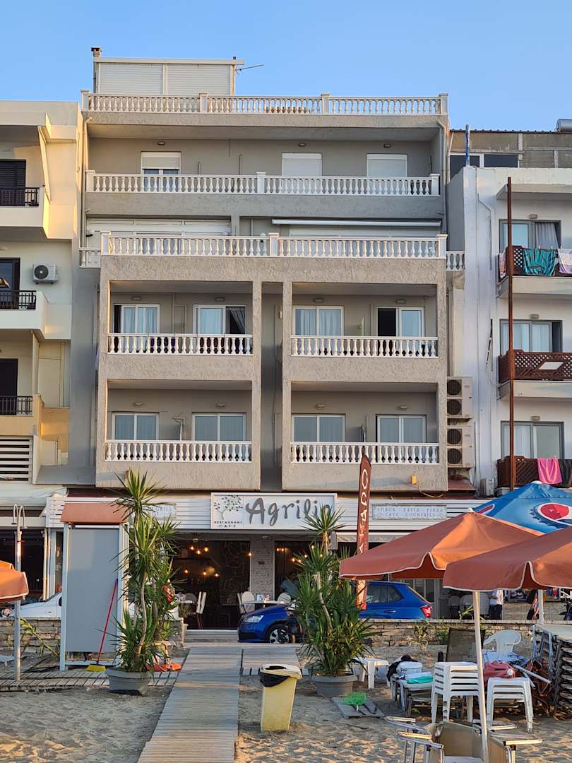Vom Strand her gesehen, Zimmer 102 , 1. Stock rechts, 2 Fenster!