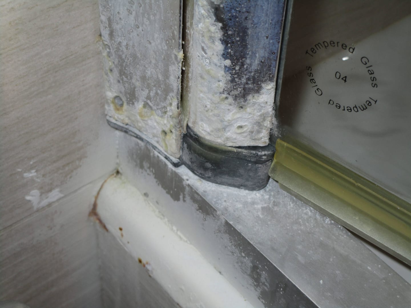 Kalkablagerungen an Duschkabine.