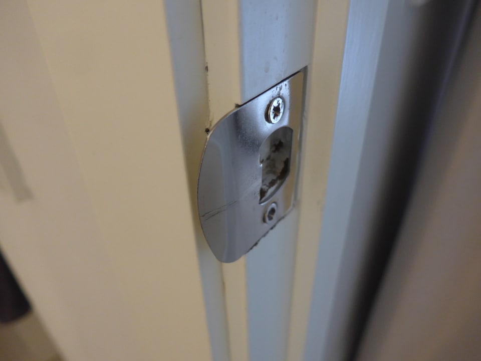 Scharfkantiger Zimmertürbeschlag zwischen Schlafzimmer und Wohnzimmer.