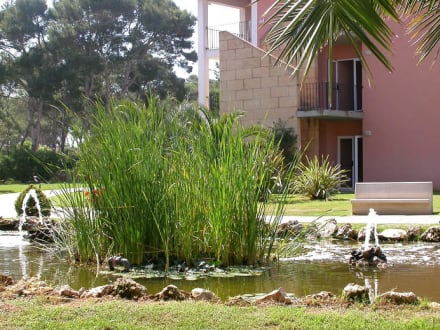 Club Colonia Sant Jordi/Mallorca-einer der vielen Teiche mit Wasserspielen und abendlichen Froschkonzert im Garten des Clubs Colonia Sant Jordi