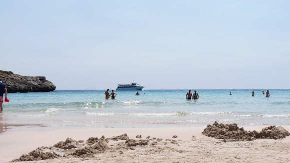 Vier Boote pendeln zur Cala Romantica