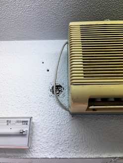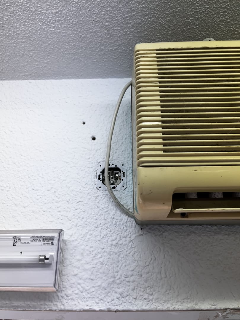 Offene Steckdose (auf 2 m Höhe) im Kinderparadies.