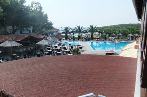 Blick auf den Pool und die Bar