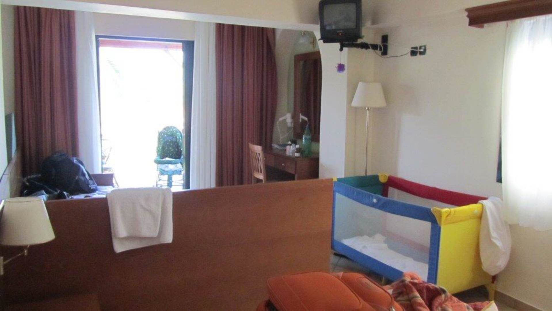 "Familienzimmer" - etwas kleinhier sieht man ein wenig, wie wenig Platz im Zimmer nach Platzierung der 5 Betten verbleibt...