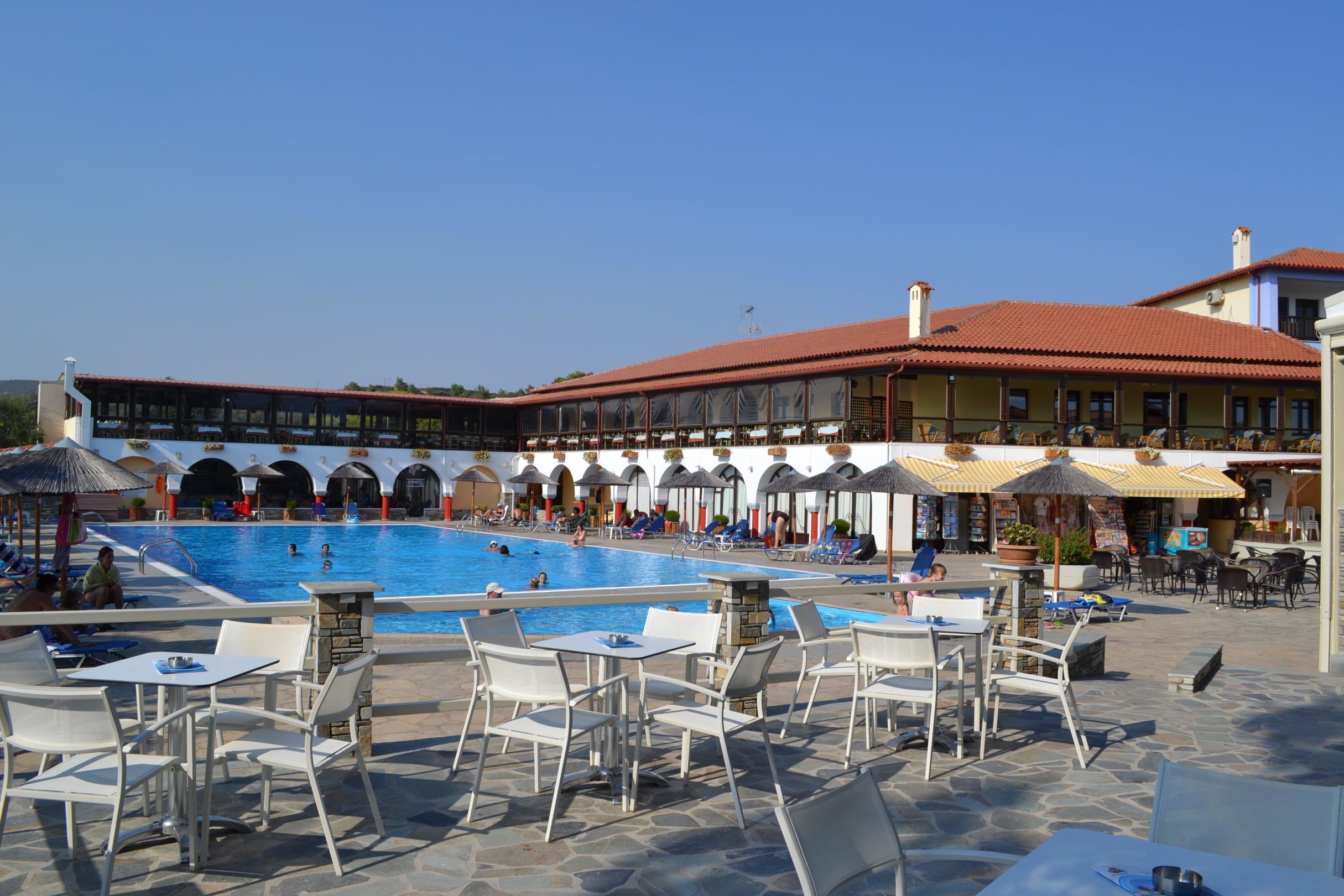 Poolanlage mit Restaurantgebäude