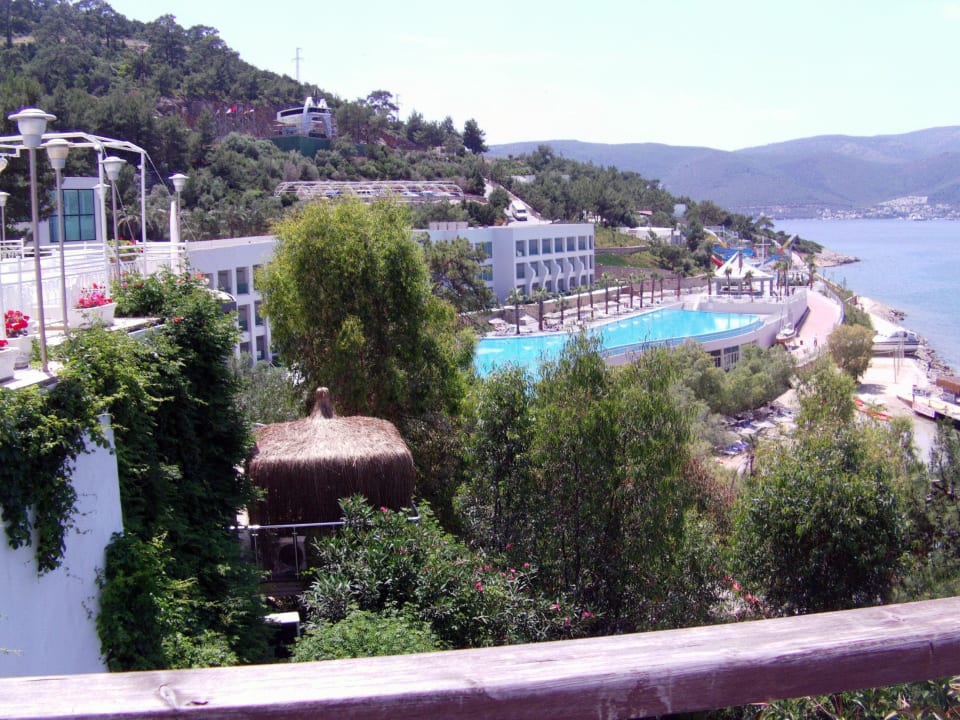 Blick auf Hauptgebäude mit Pool