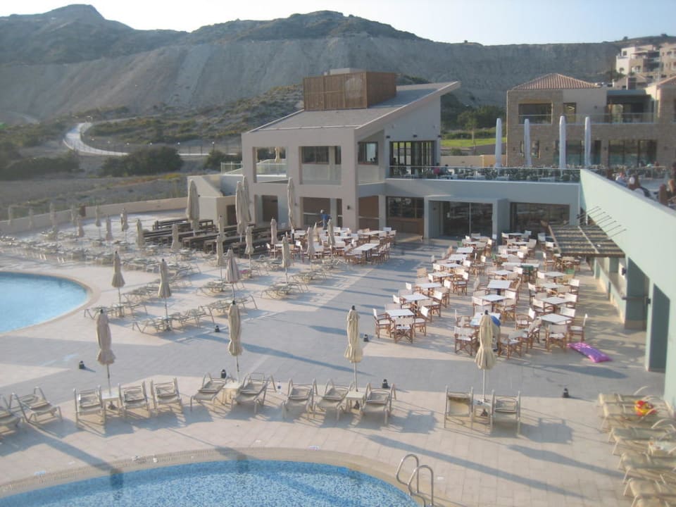 Activity-PoolHier findet die Animation statt und auch das Mittagsbuffet. Rechts Cafe und vorn Kinderbecken.